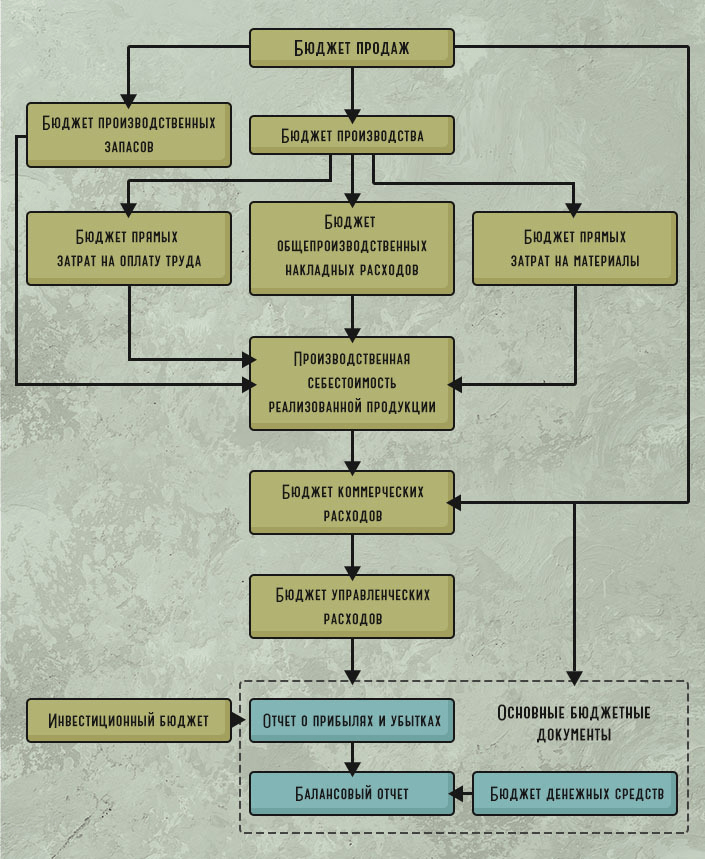 В плане последовательности — бюджеты формируют вначале для каждого подразделения, а потом сводят их в основной бюджет по предприятию. В Америке его называют Master Budget.