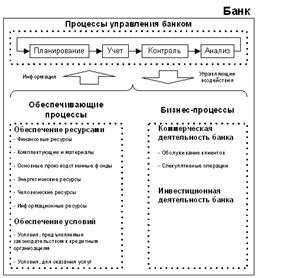 - Основные (или бизнес-процессы) – это те действия, в результате которых банк извлекает прибыль (коммерческая и инвестиционная деятельность). Например, обслуживание клиентов.