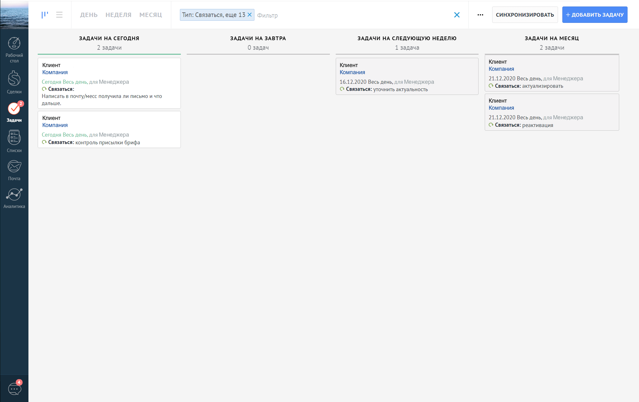 У каждой сделки должно быть запланировано следующее действие: написать, позвонить, напомнить о себе. Если лид висит без задач, то, скорее всего, сделкой никто не занимается.