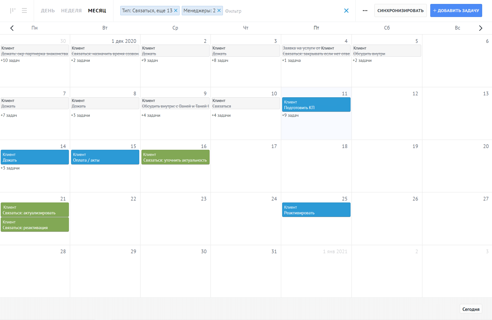 По каждой сделке ставятся задачи для ответственного менеджера, фиксируется результат их выполнения и все договорённости с клиентом. Это делается вручную, а часть задач настраивается автоматически: например, пришла заявка — менеджеру приходит оповещение, чтобы он позвонил клиенту.