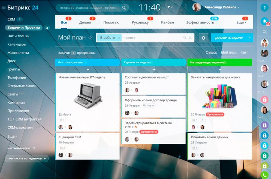 В «Битрикс24», amoCRM и других крупных CRM-системах можно создавать свои шаблоны задач, охватывающие функции по управлению проектами и персоналом.