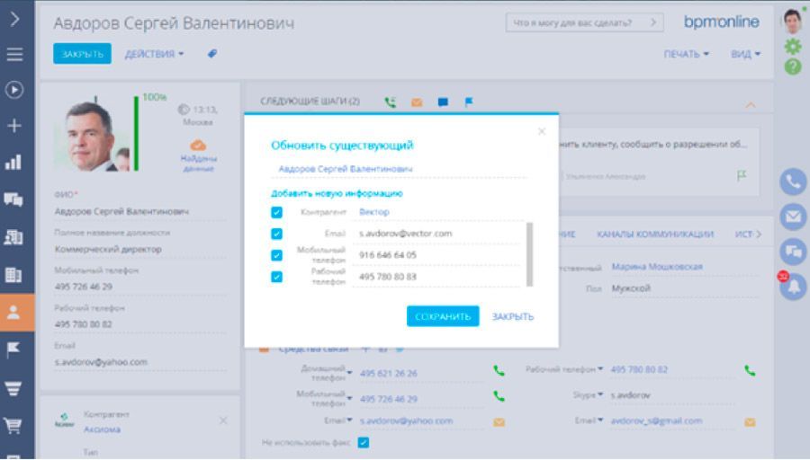 Изменение сведений о контрагенте, найденные CRM-системой bpm’online