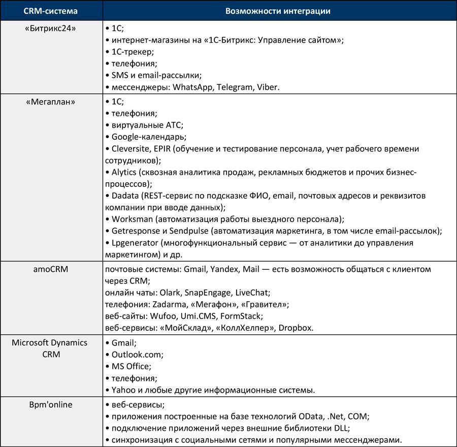 К интеграции относится подключение телефонии, email, соцсетей и других каналов связи, чтобы поступающая от клиента заявка автоматически открывала новую карточку со всеми данными, которую менеджер по продажам заполняет по ходу разговора.