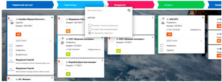 Чтобы сделать одно и то же действие в разных CRM-системах, требуется разное время. Например, в «Мегаплане» реализована система «Канбан» — можно перемещать сделки между пунктами воронки продаж одним движением мыши. Другие решения имеют традиционный интерфейс с выпадающими списками.