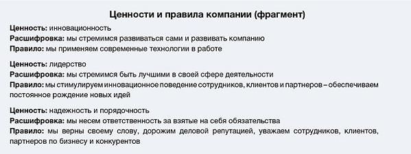 Корпоративная культура состоит из систем лидерства и коммуникаций, действующей символики, правил решения конфликтных ситуаций, иерархического положения членов коллектива. Чтобы грамотно составить для компании нормы и правила, важно учитывать цели и ценности, миссию организации, но стоит брать во внимание и интересы сотрудников.