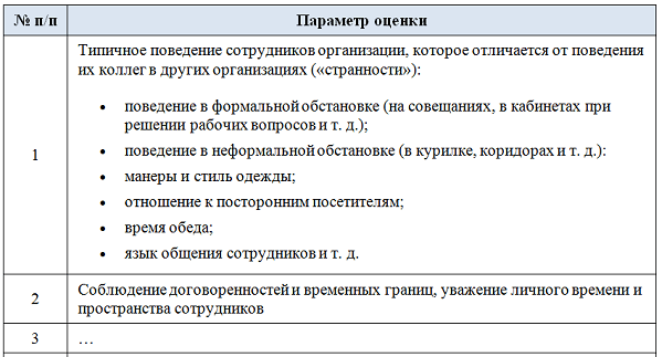 - анализ правил, норм и ценностей существующей корпоративной культуры;