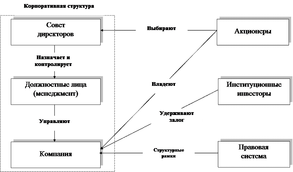Наличие определенной системы осуществления корпоративного управления предполагает формирование организационной модели, защищающей и обеспечивающей интересы участников компании.