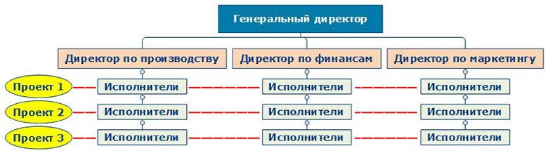 Недостатком такой организационной структуры предприятия является сложность связей между отделами, а также высокие расходы на содержание управленцев.