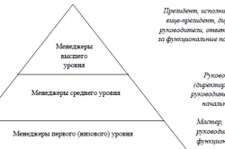 - Нижний уровень – непосредственные руководители структурных подразделений, занимающиеся прямой работой с подчиненными.