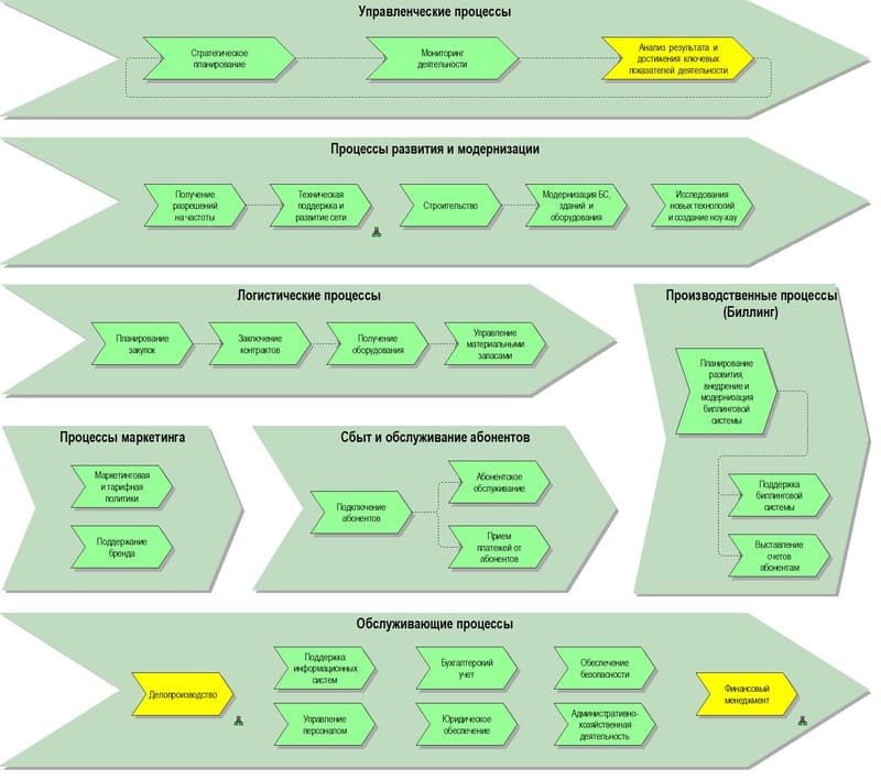 Создание карты основных бизнес-процессов подразумевает указание лишь главных операций и порядок их выполнения.