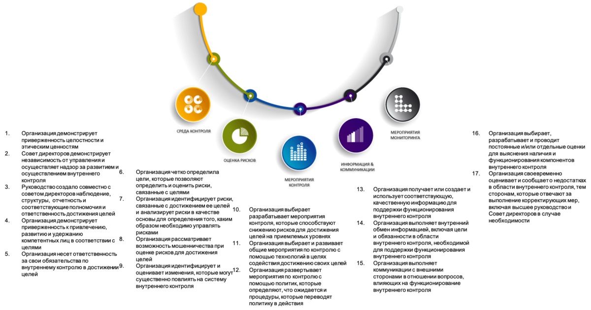 Пять вышеприведенных компонентов поддерживаются дополнительным набором принципов. Эти принципы носят широкий характер и охватывают все – от корпоративного руководства программой ERM до методов мониторинга рисков.
