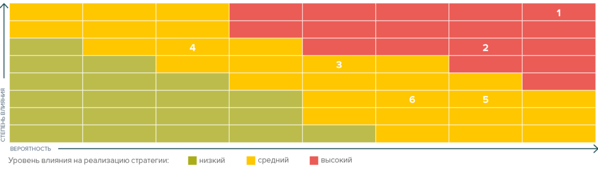 Ниже приведен упрощенный пример тепловой карты обзора приоритетов рисков: